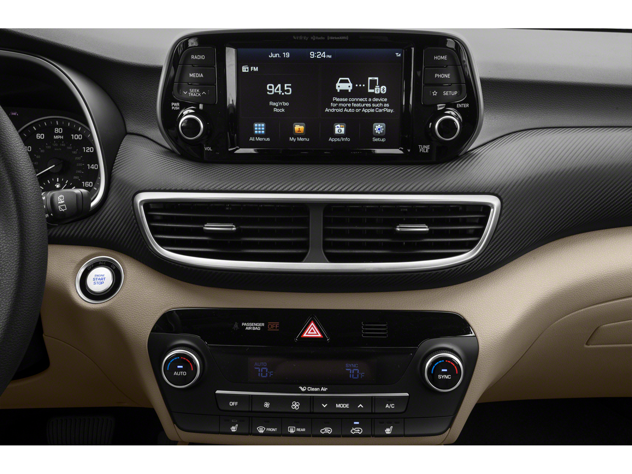 - Radio: Infinity Audio System -inc: 315 Watts, Clari-Fi music restoration technology, external amplifier, 8 speakers, 7" color touchscreen display, Android Auto and Apple CarPlay, USB/AUX outlets, Bluetooth® hands-free phone system, HD Radio, VR and Blue Link connected car system and wireless device charging