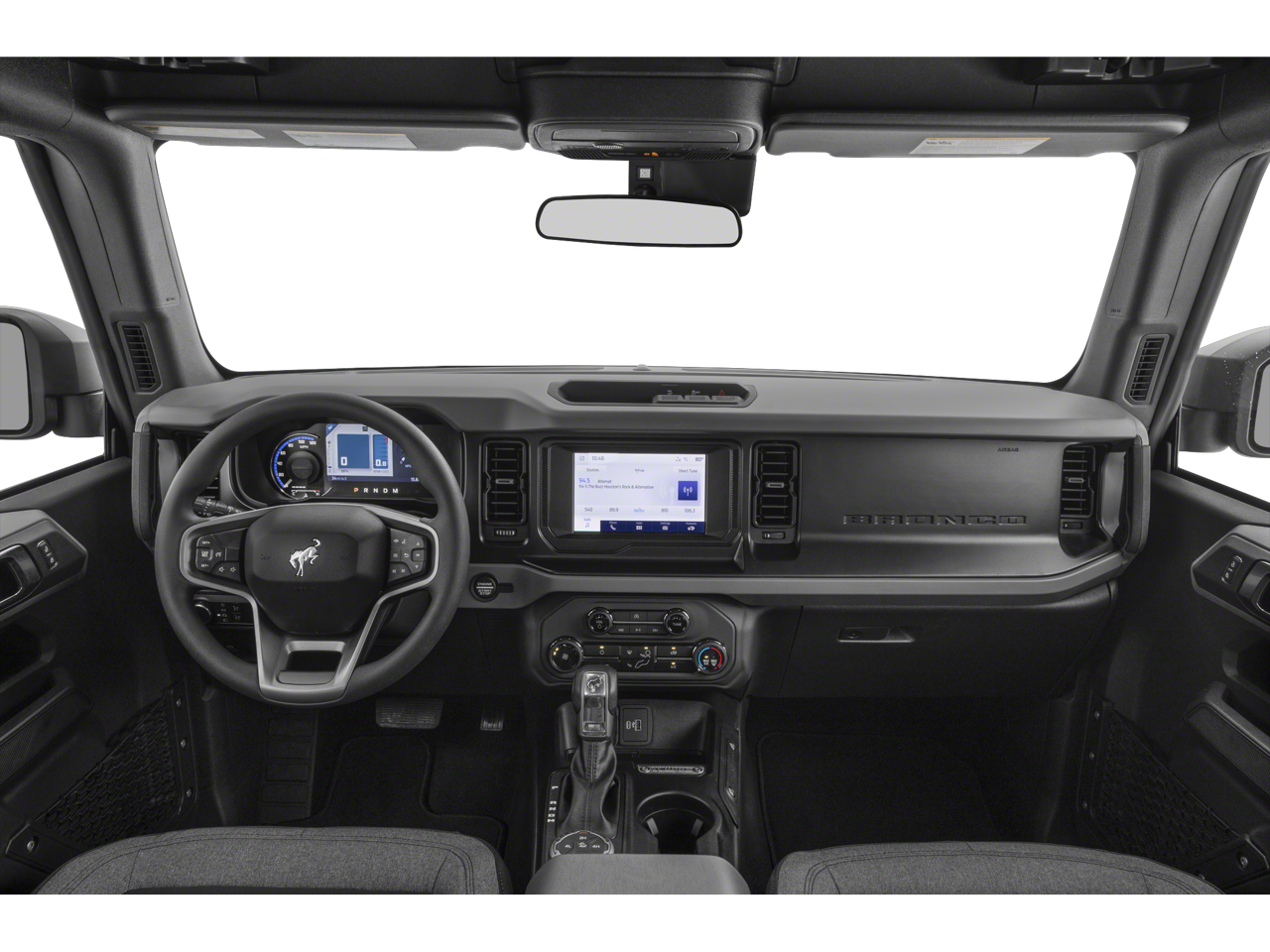 Climb into the driver's seat and immerse yourself in the Bronco's well-appointed interior. The Cloth Bucket Seats provide comfort and support, while the Split folding rear seat offers versatility to accommodate your gear. Stay connected with the SYNC 4 infotainment system, complete with SiriusXM Radio, and enjoy the convenience of features like Remote Keyless Entry and Steering Wheel Mounted Audio Controls.