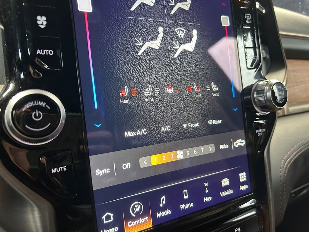 Safety is a top priority, and this Ram 3500 Laramie Longhorn is equipped with advanced features like Blind Spot and Cross Path Detection, keeping you aware of your surroundings and providing peace of mind on the road. The power-deployable running boards make it easy to get in and out, while the off-road information pages give you the data you need to tackle any challenge.