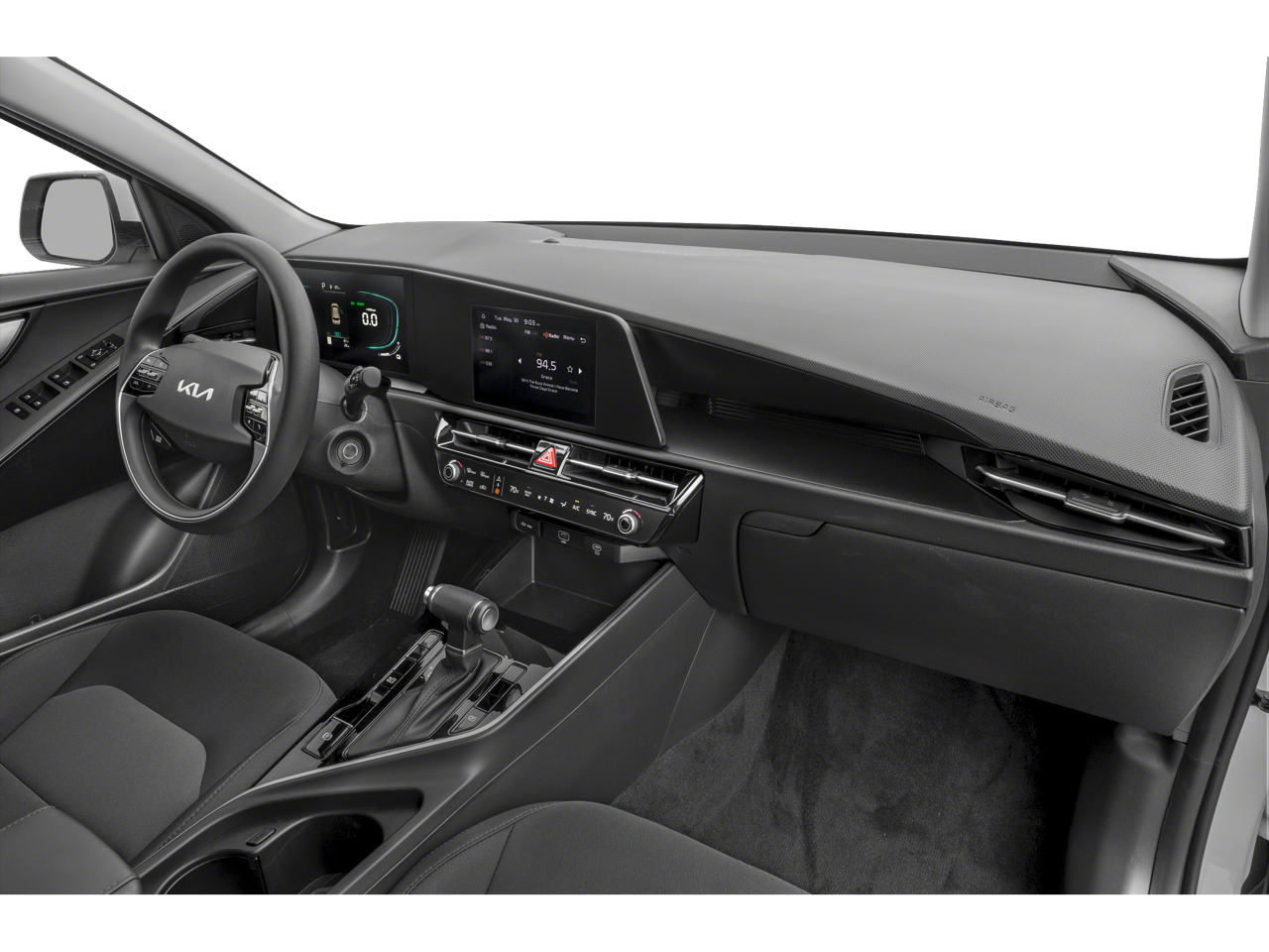 The cabin is thoughtfully designed with your comfort in mind, offering amenities such as 6 Speakers, Air Conditioning, Power windows, Remote keyless entry, and Steering wheel mounted audio controls. The Niro's four-wheel independent suspension and speed-sensing steering provide a smooth, responsive, and engaging driving experience.