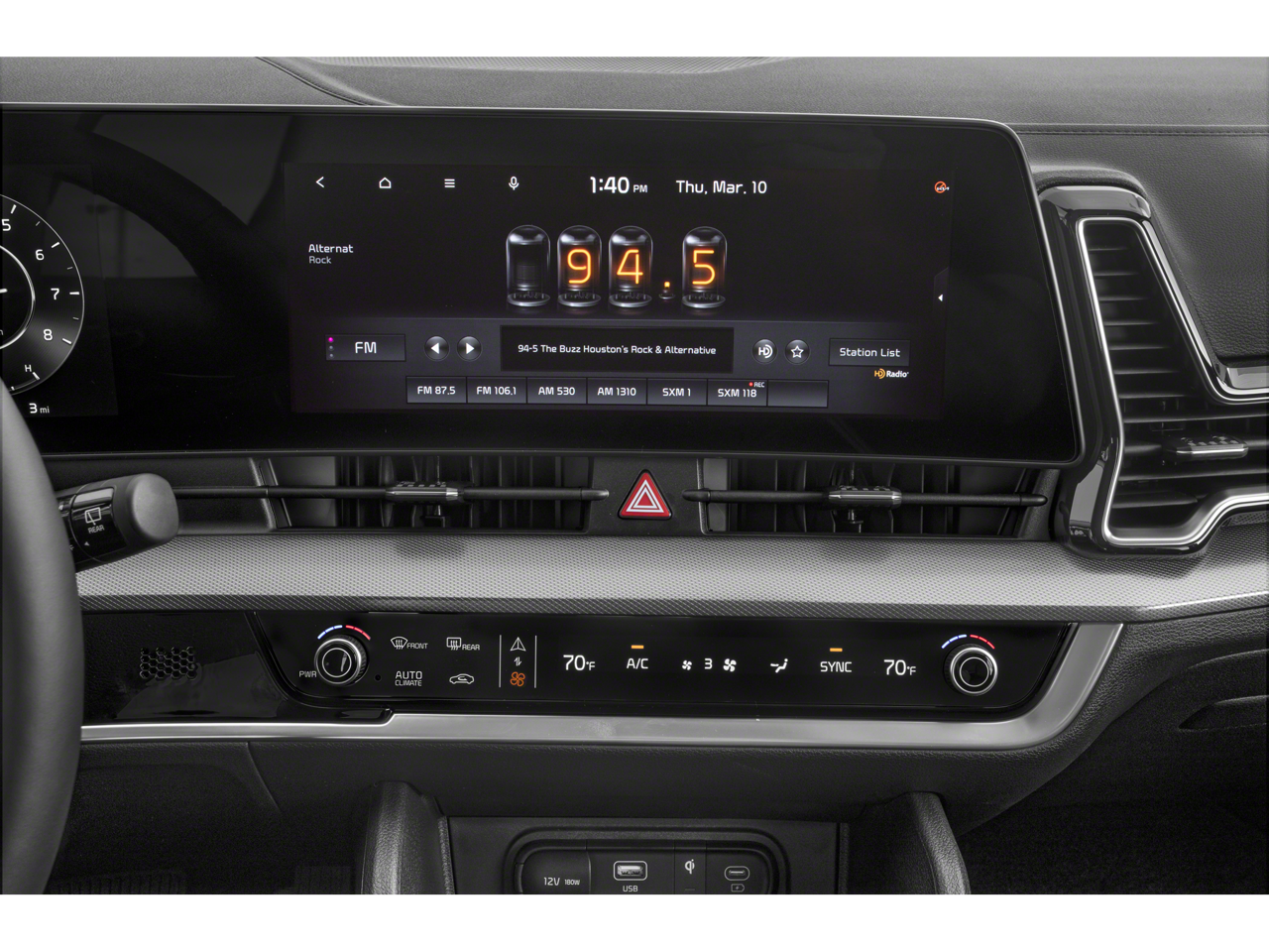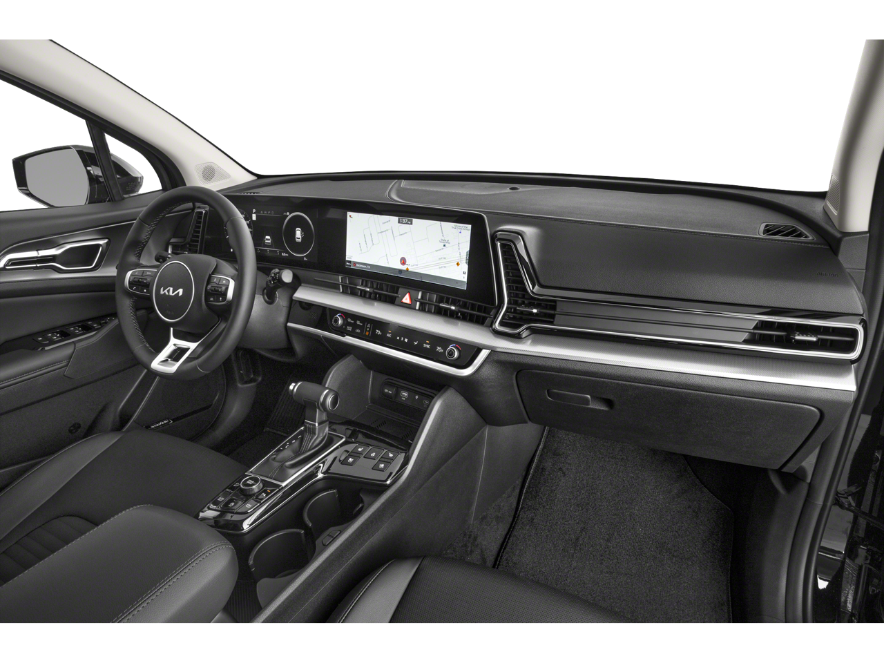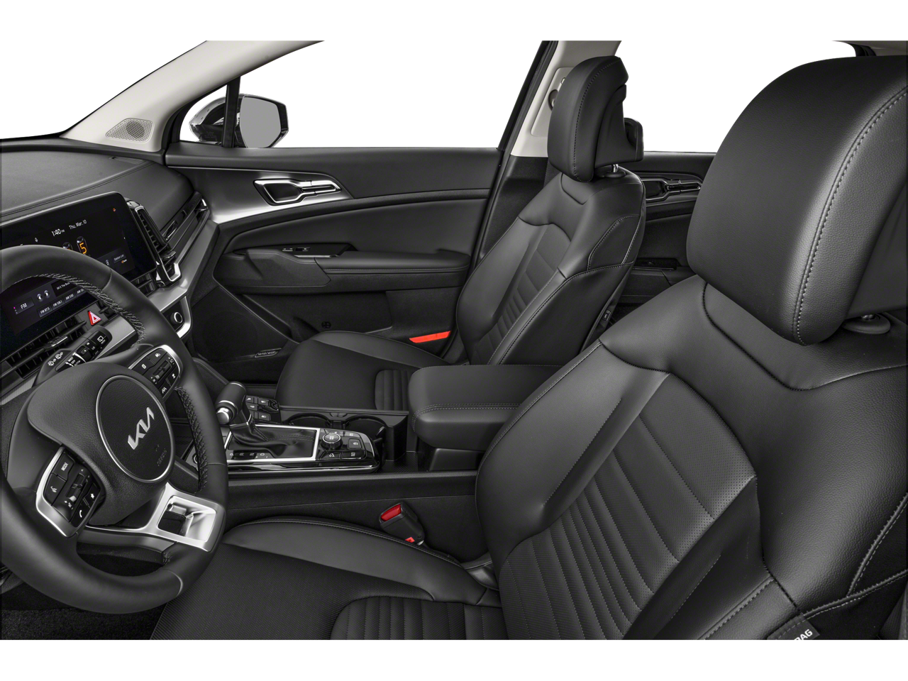 The interior of the Sportage SX-Prestige is a sanctuary of refined luxury. Indulge in the comfort of heated and ventilated front bucket seats, wrapped in premium Leatherette upholstery. The spacious cabin offers ample room for passengers and cargo, with a power liftgate and a host of smart storage solutions to accommodate your needs.