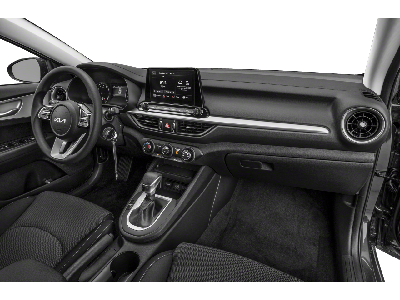 Inside, the Forte LX surrounds you with a thoughtfully designed cabin, featuring comfortable cloth seating, intuitive controls, and a host of convenience features. The 8-inch touchscreen display with AM/FM radio and steering wheel-mounted audio controls make it easy to stay connected and entertained on the go.