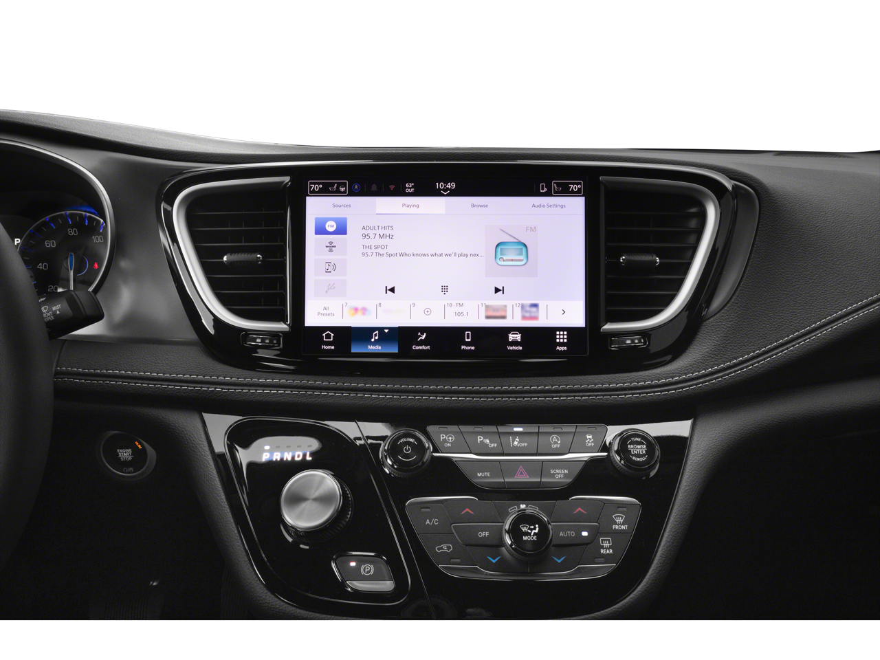 Step inside the Pacifica Select and be captivated by the 10.1 Uconnect 5 touchscreen display, providing intuitive control over your entertainment and connectivity. Enjoy the convenience of Apple CarPlay and Google Android Auto, keeping you connected on the go. The Caprice Leatherette Bucket Seats offer exceptional comfort, while the Heated Steering Wheel and Heated Front Seats ensure you stay cozy in any weather.