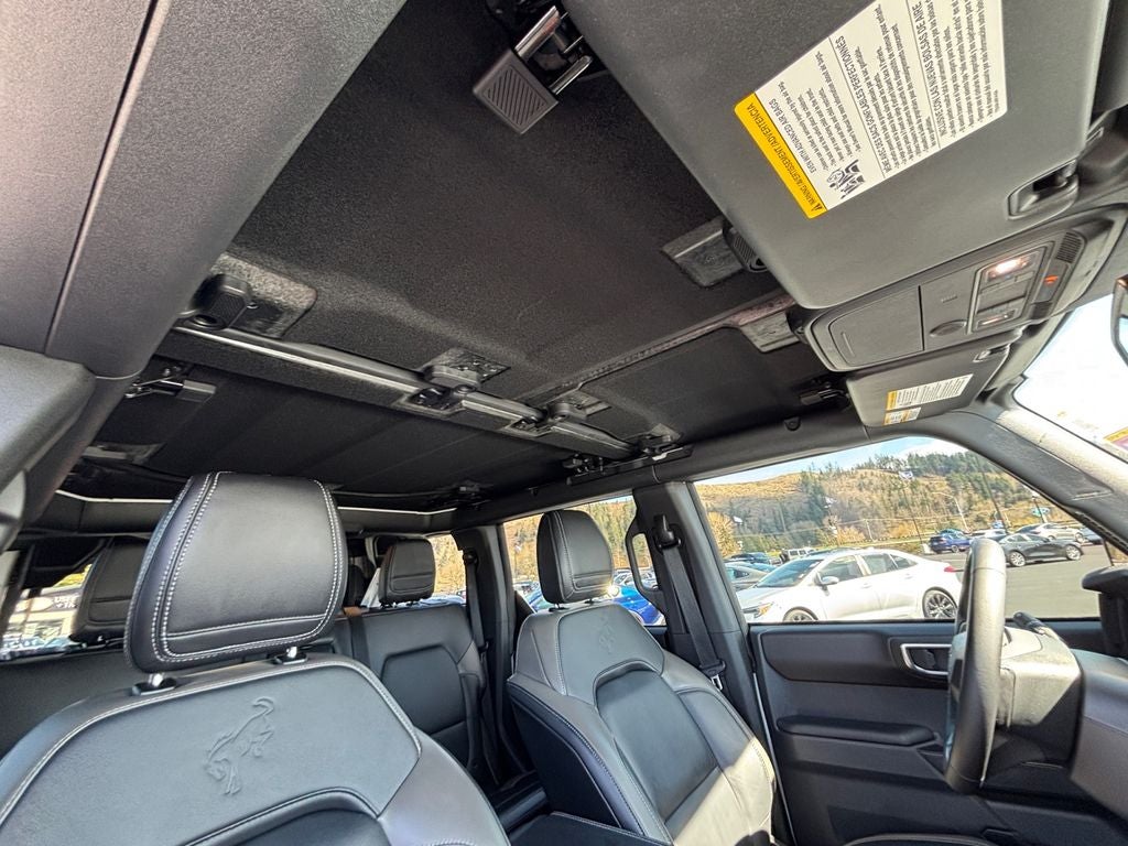 The Outer Banks package elevates the Bronco's style with unique exterior features, including 18 Bright Machined Aluminum Wheels and a Painted Hard Top. Inside, you'll enjoy the comfort and convenience of Heated Leather-Trimmed/Vinyl Bucket Seats, a Heated Steering Wheel, and a host of advanced technologies, including SYNC 4, 911 Assist, and FordPass Connect.