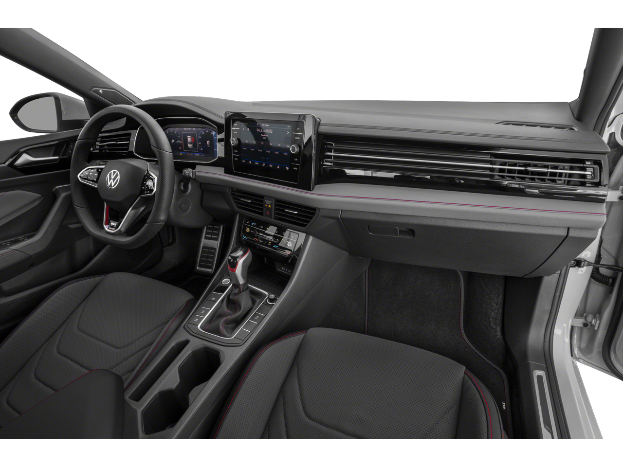 Step inside the Jetta GLI and you'll be greeted by a premium, driver-focused cabin. Perforated Vienna leather seating surfaces, heated and actively ventilated front seats, and a heated steering wheel provide exceptional comfort and luxury. The MIB3 composition media system with an 8 touchscreen and 9-speaker audio setup keeps you connected and entertained, while the auto-dimming rearview mirror with HomeLink Connect adds a touch of convenience.