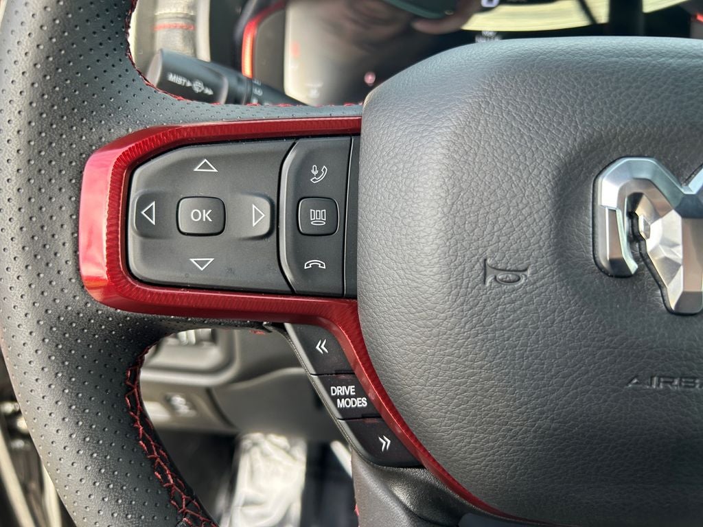 Inside, the 2026 Ram 1500 Rebel pampers you with premium amenities, including a 12-inch Uconnect 5 Navigation system, Wireless Charging Pad, and Heated Steering Wheel. The Cloth/Vinyl Bucket Seats provide all-day comfort, while the Power Adjustable Pedals and 8-Way Power Driver Seat ensure a perfect driving position.